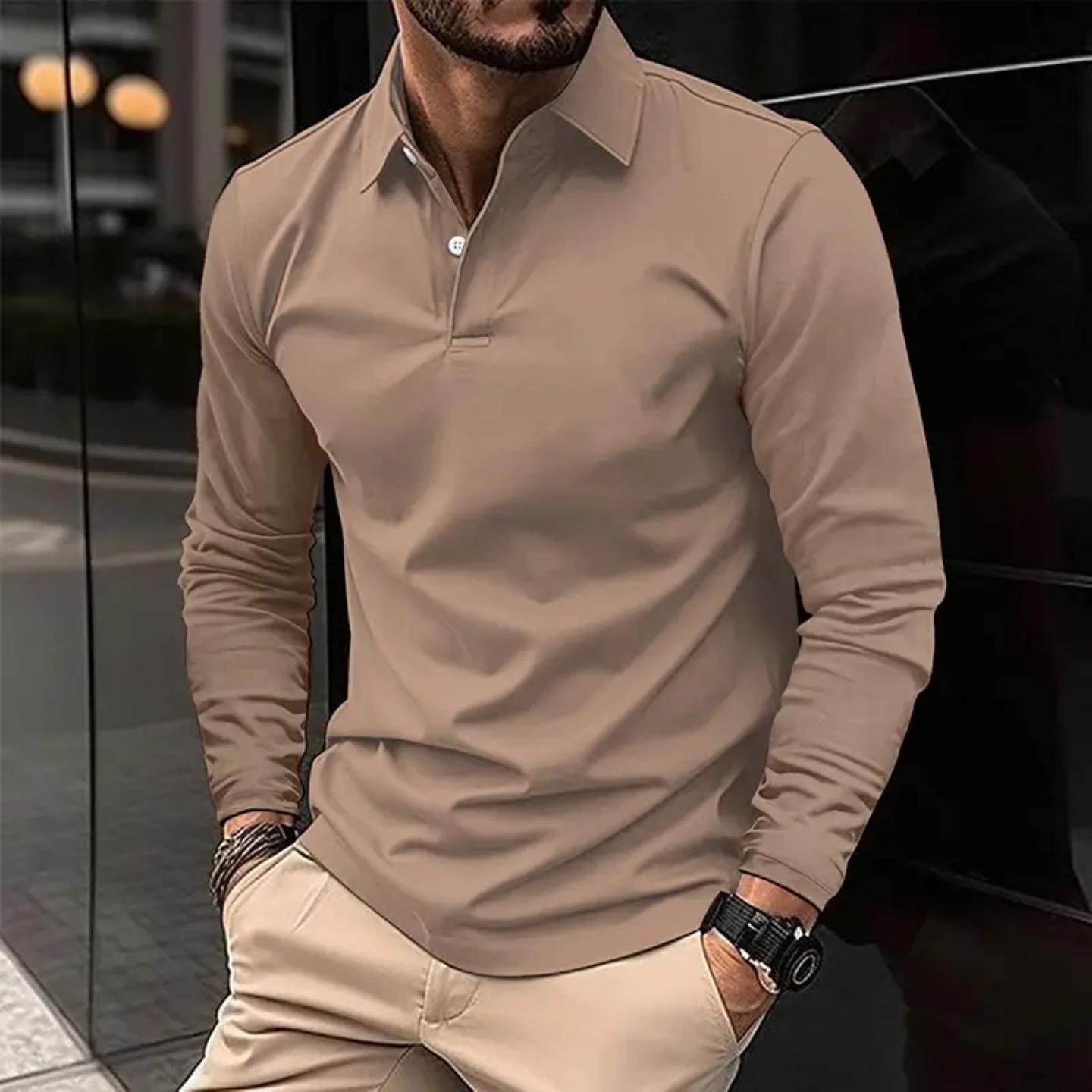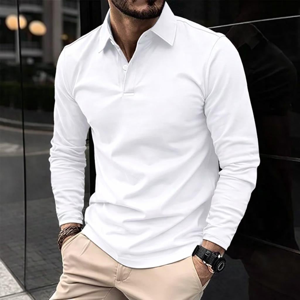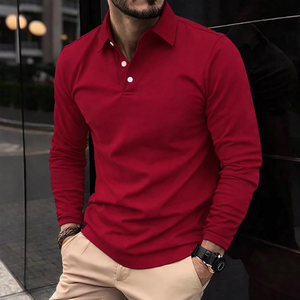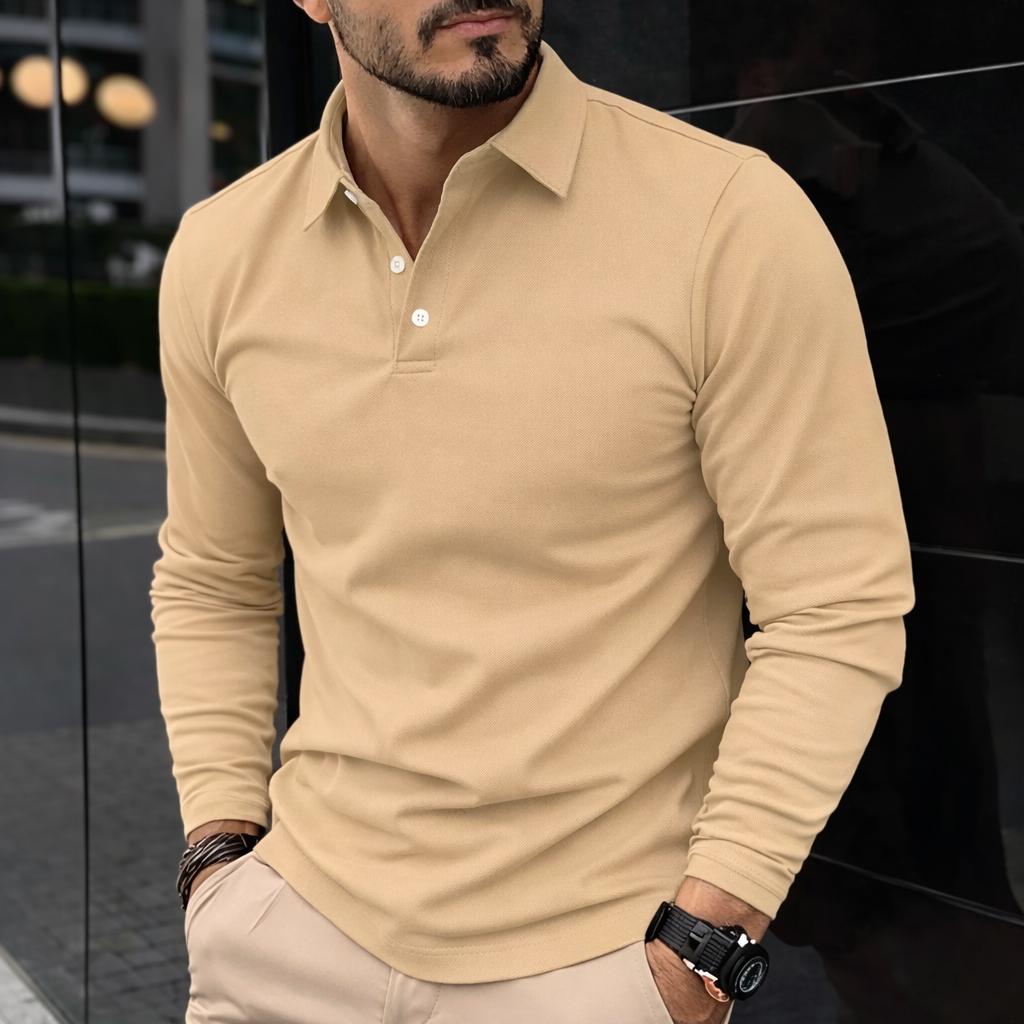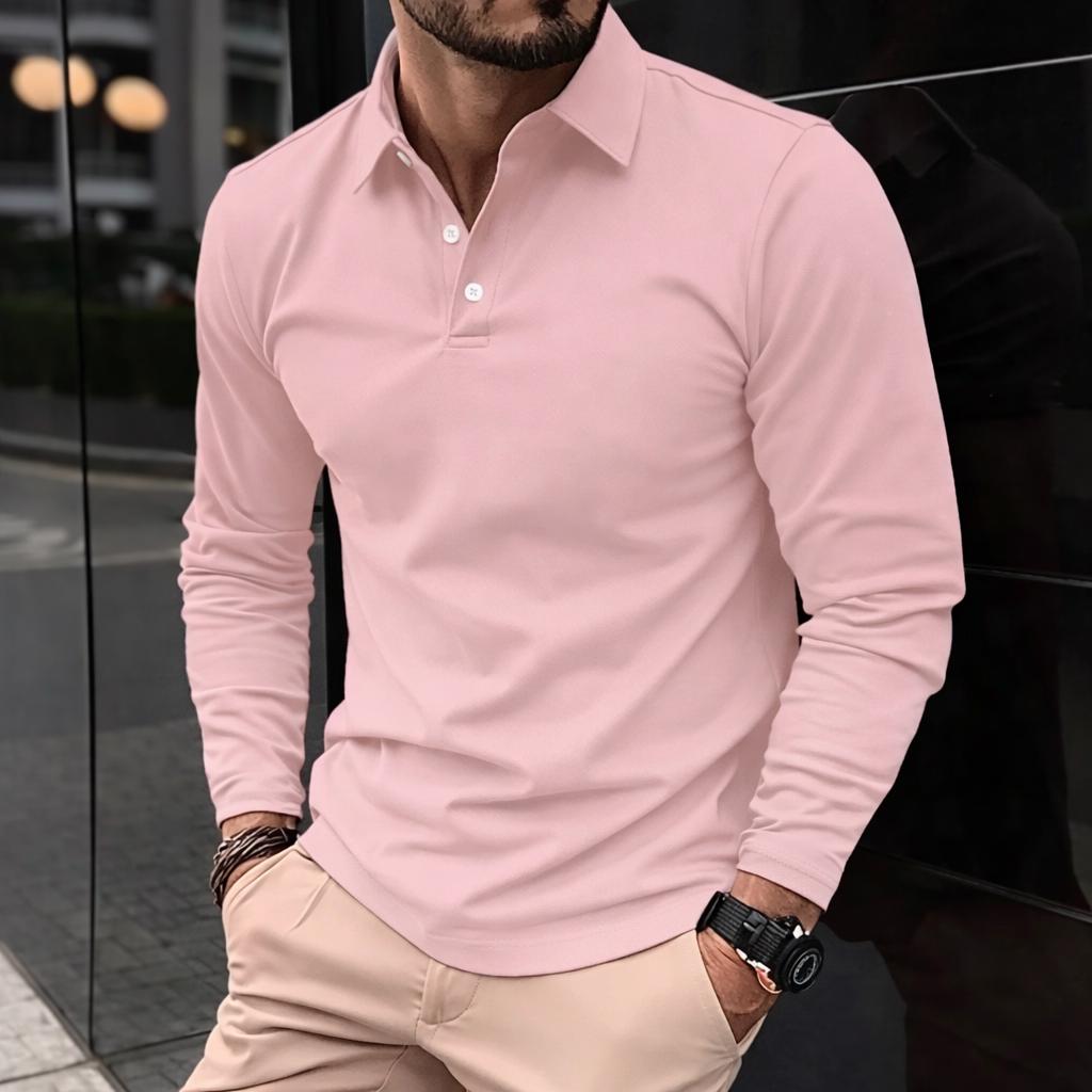 Men’s Long Sleeve Polo Shirt – Premium Slim Fit, Elegant Smart Casual Men’s Top