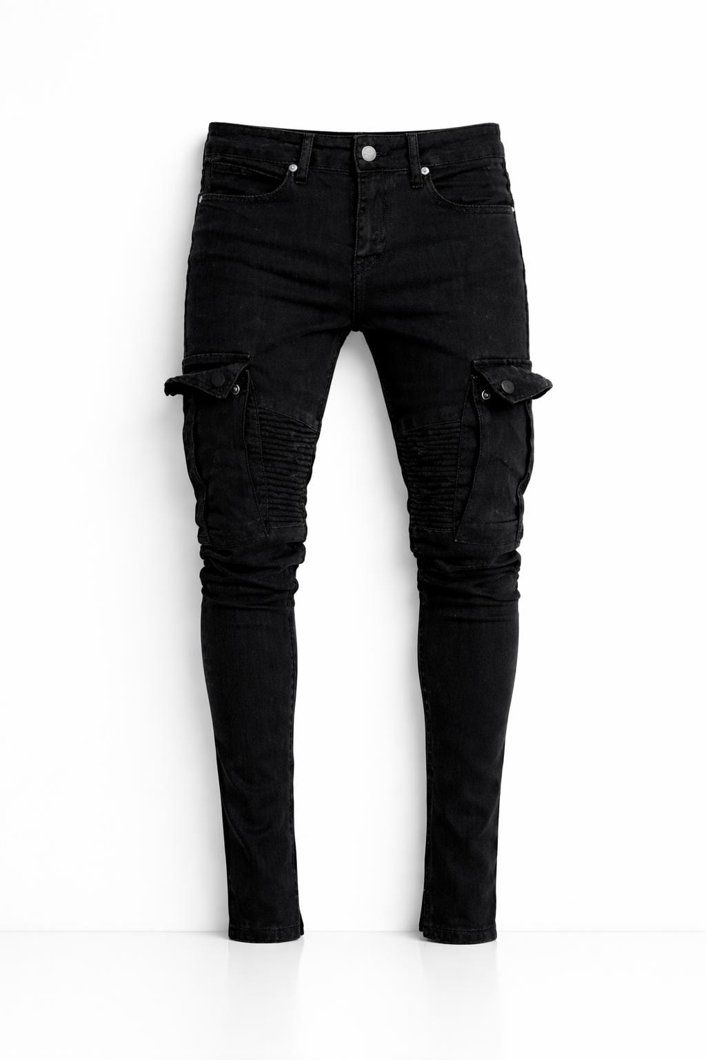 Upgrade your everyday look with these black slim fit cargo jeans, designed for a modern streetwear and biker-inspired style.