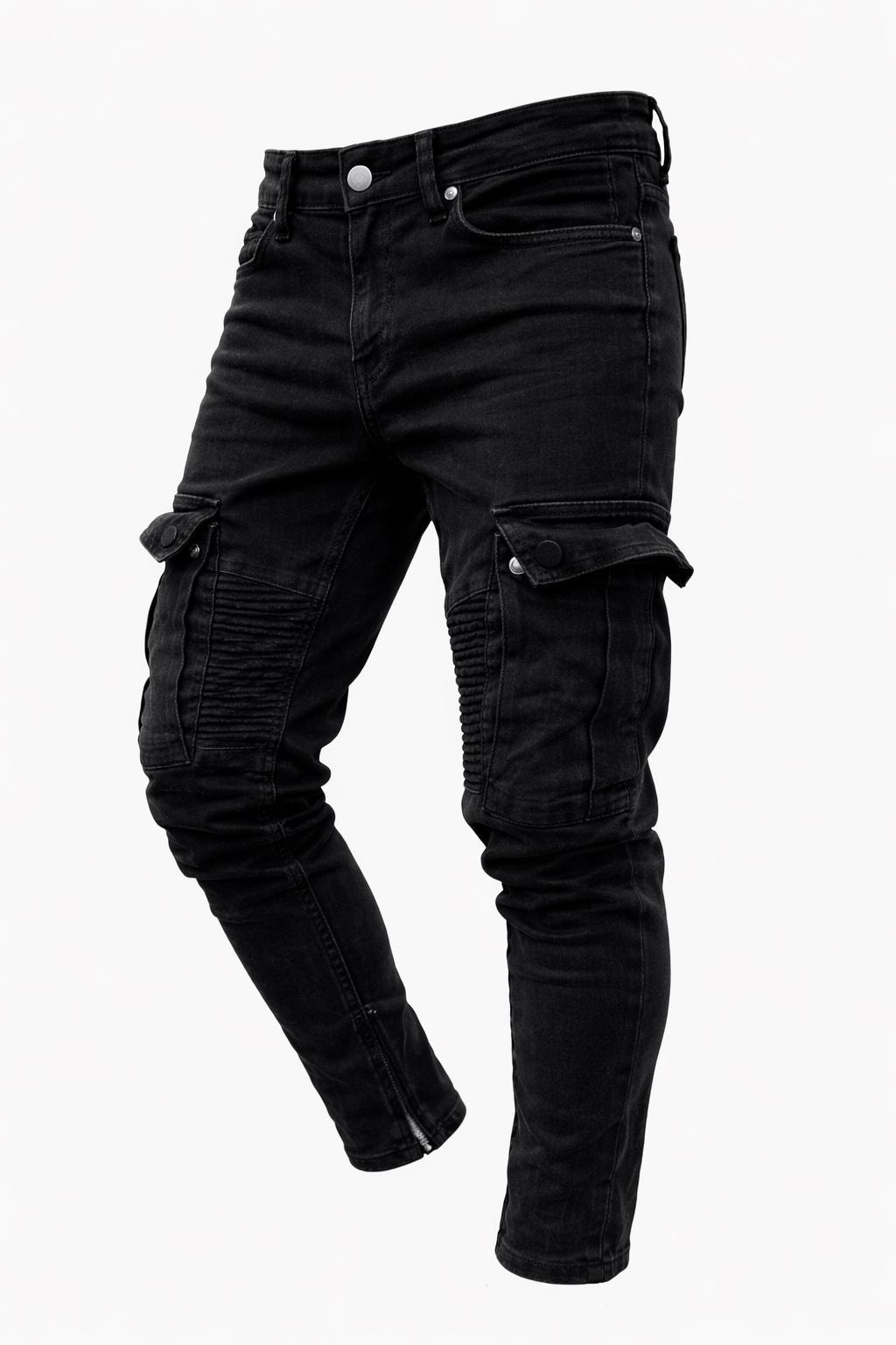 en’s Black Slim Fit Cargo Jeans – Biker & Streetwear Style